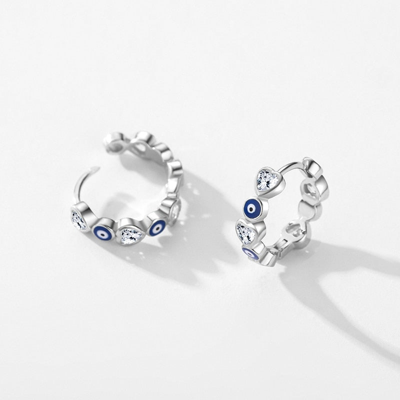 Nosso Brinco Argola Olho Grego e Coração em Prata 925 conta com um design exclusivo e com cada detalhe pensado para completar e trazer mais beleza ao estilo de cada mulher. Prezamos pela alta qualidade das joias, utilizando os melhores materiais, livres de níquel, chumbo e todos hipoalergênicos.